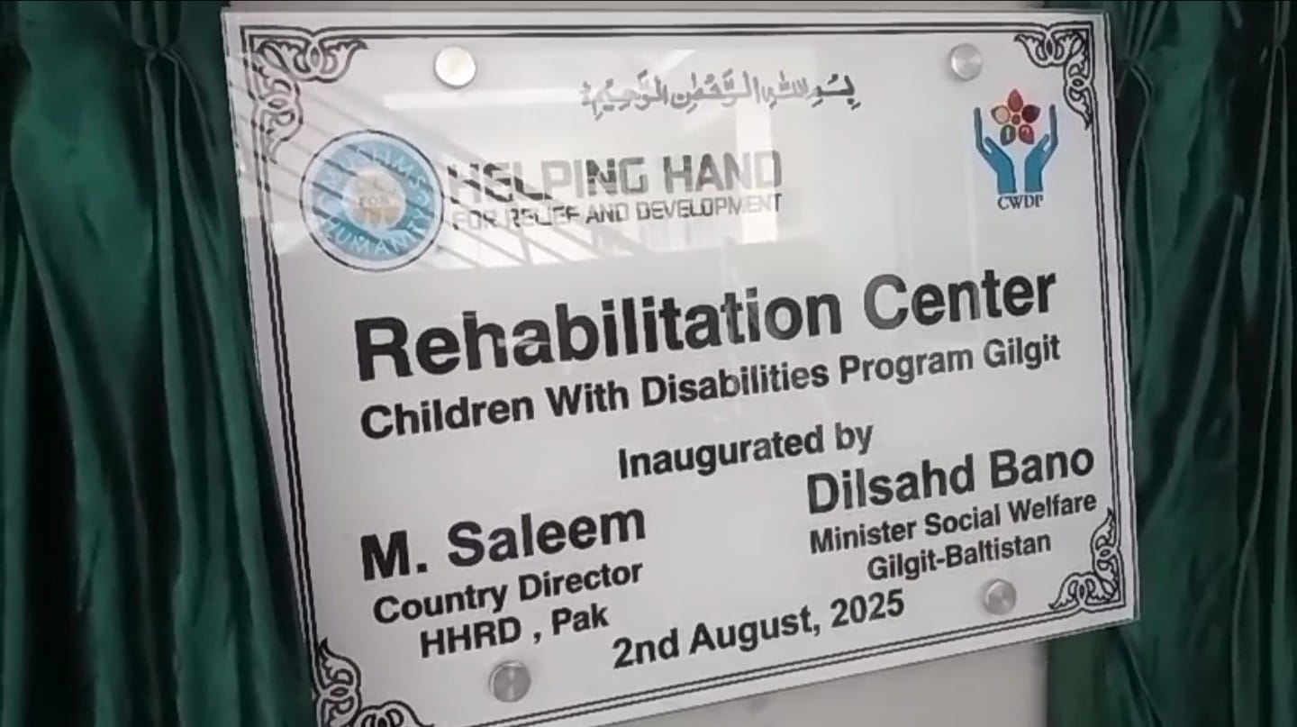 گلگت شہر میں فلاحی ادارہ ہیلپنگ ہینڈ فار ریلیف اینڈ ڈویلپمنٹ کے زیر اہتمام خصوصی افراد کے لیے ایک باوقار اور بامقصد تقریب کا انعقاد کیا گیا جس کا مقصد خصوصی افراد کو سہولیات کی فراہمی اور ان کی عملی زندگی کو آسان بنانا تھا۔ اس تقریب کے دوران ادارے کے باقاعدہ قیام اور خصوصی افراد کے لیے ایک جدید بحالی مرکز کے افتتاح کا بھی اعلان کیا گیا۔