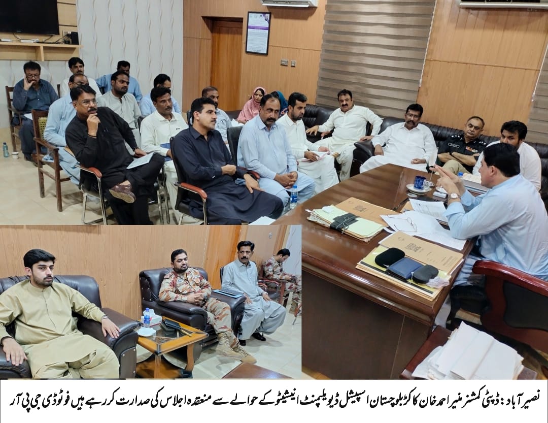 ڈپٹی کمشنر نصیرآباد منیر احمد خان کاکڑ کی زیر صدارت بلوچستان اسپیشل ڈیویلپمنٹ انیشیٹو کے حوالے سے ایک اہم اجلاس منعقد ہوا جس میں ترقیاتی منصوبوں کا تفصیلی جائزہ لیا گیا