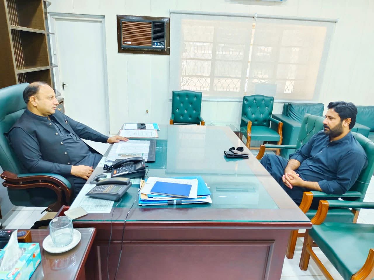 وفاقی پارلیمانی سیکرٹری براءے وزارت مواصلات و ایم این اے انجینئر ملک گل اصغر خان بگھور کے کوآرڈینیٹر انجینئر ملک طاہر ندیم بگھور کی انجئیر گل اصغر خان بگھور کی ہدایت پر چیف انجینئر چشمہ جہلم لنک کینال خیر محمد سے انکے آفس میں خصوصی ملاقات ۔ دوران نشست