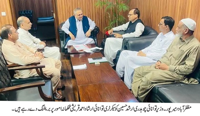 وزیر توانائی آزاد حکومت ریاست جموں وکشمیر چوہدری ارشد حسین کی زیر صدارت وزرات توانائی آفس مظفرآباد میں اہم اجلاس ہوا۔ جس میں سیکرٹری توانائی وآبی وسائل ارشاد احمد قریشی، چیف انجینئر برقیات ساؤتھ محمد نذیر مغل، چیف انجینئر برقیات نارتھ چوہدری زیاد احمد، سیکشن آفیسر ملک اشفاق احمد اعوان اور ٹیکنیکل اسسٹنٹ چوہدری خلیل احمد نے شرکت کی۔ اس موقع پر وزیر توانائی آزاد کشمیر چوہدری ارشد حسین نے وولٹیج اور برقیاتی سسٹم کی اپ گریڈیشن، نئے ٹرانسفارمرز کی تنصیب، کنڈکٹر اور پولز کی فراہمی کو یقینی بنانے کی ہدایات جاری کیں اور کہا کہ آبادی میں اضافے کے ساتھ ساتھ لوڈ میں بھی اضافہ ہورہا ہے جس وجہ سے بجلی کے کم وولٹیج کا سامنا ہے اور بجلی کا سسٹم ٹرپ ہوجاتا ہے۔ انہوں نے کہا کہ محکمہ برقیات کی تنظیم ونو سے سسٹم میں بہتری آرہی ہے۔اس موقع پر سیکرٹری توانائی وآبی وسائل ارشاد احمد قریشی نے وزیر توانائی آزاد کشمیر چوہدری ارشد حسین کو محکمانہ امور پر بریفینگ دی۔