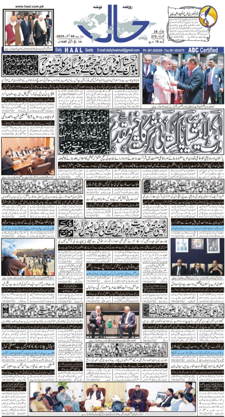 روزنامہ حال 08 اکتوبر 2025ء
