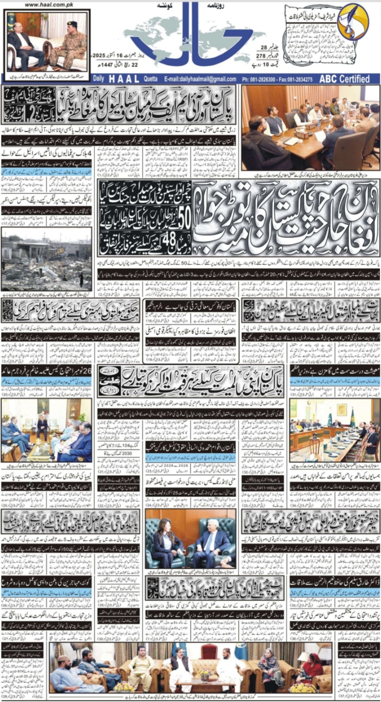 روزنامہ حال 16 اکتوبر 2025ء On Oct 15, 2025 Share Download (PDF, Unknown) Continue Reading Share FacebookTwitterGoogle+ReddItWhatsAppPinterestEmail
