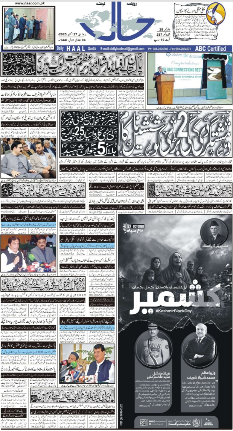روزنامہ حال 27 اکتوبر 2025ء